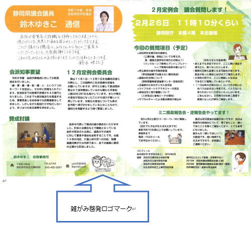 はない洋介市議会議員 活動通信Vol.11表面右下に雑がみ啓発ロゴマークが掲載されています。