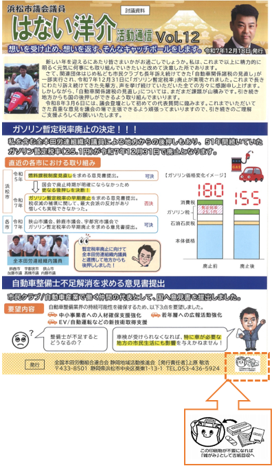 令和7年12月18日発行 はない洋介活動通信 Vol.12